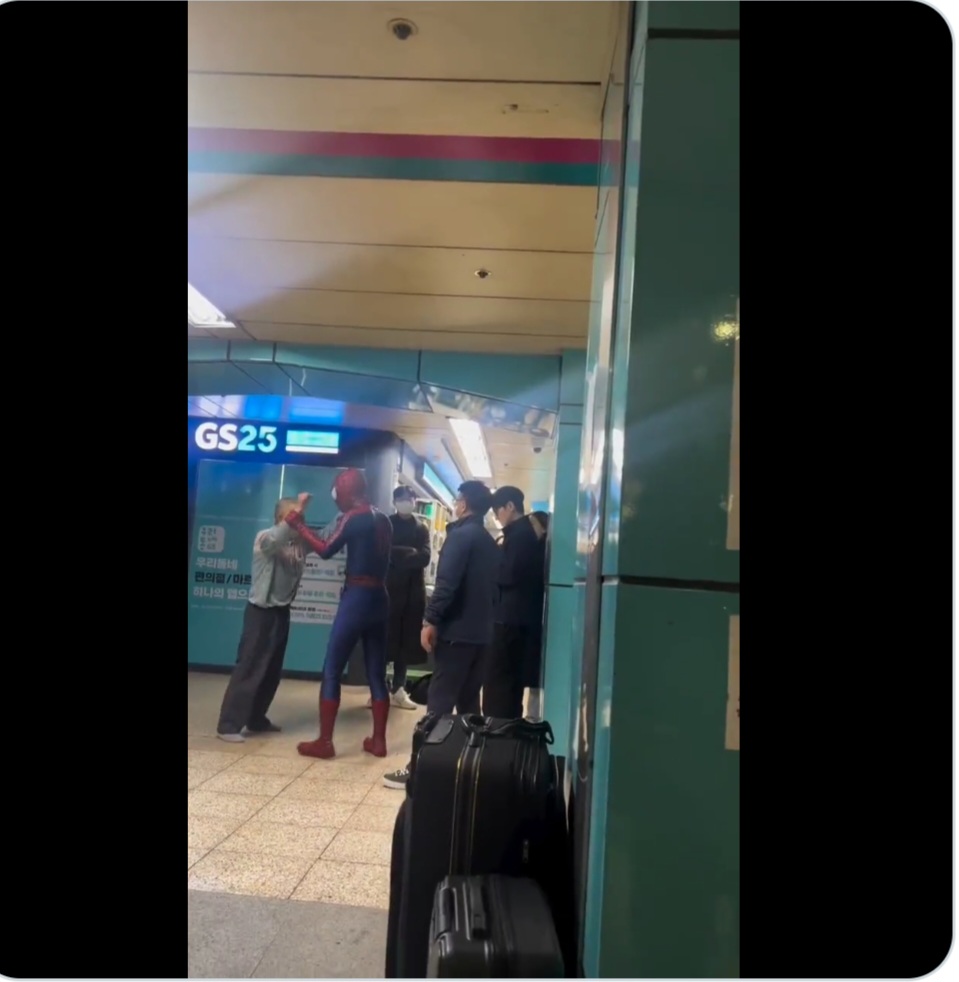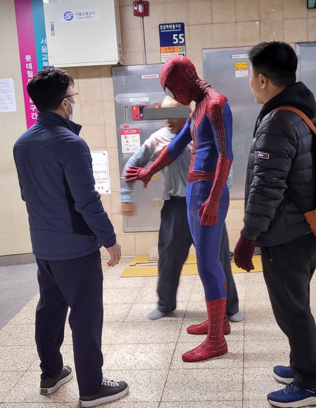 2023년 11월 11일, 서울 지하철 2호선 잠실역에서 스파이더맨 복장을 한 한 시민이 노숙인이 역무원을 폭행하려는 것을 말리는 사건이 일어났습니다.