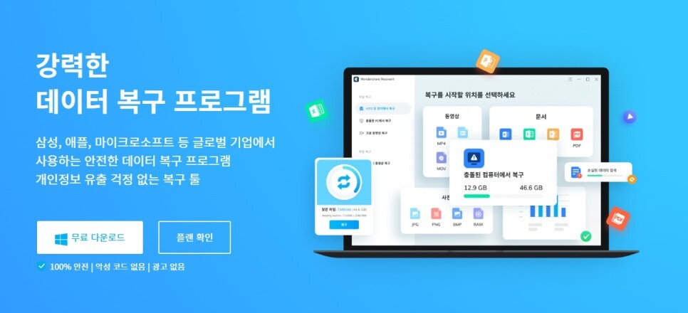 1. 원더쉐어 홈페이지에서 리커버릿 프로그램을 다운로드 및 설치하시기 바랍니다.